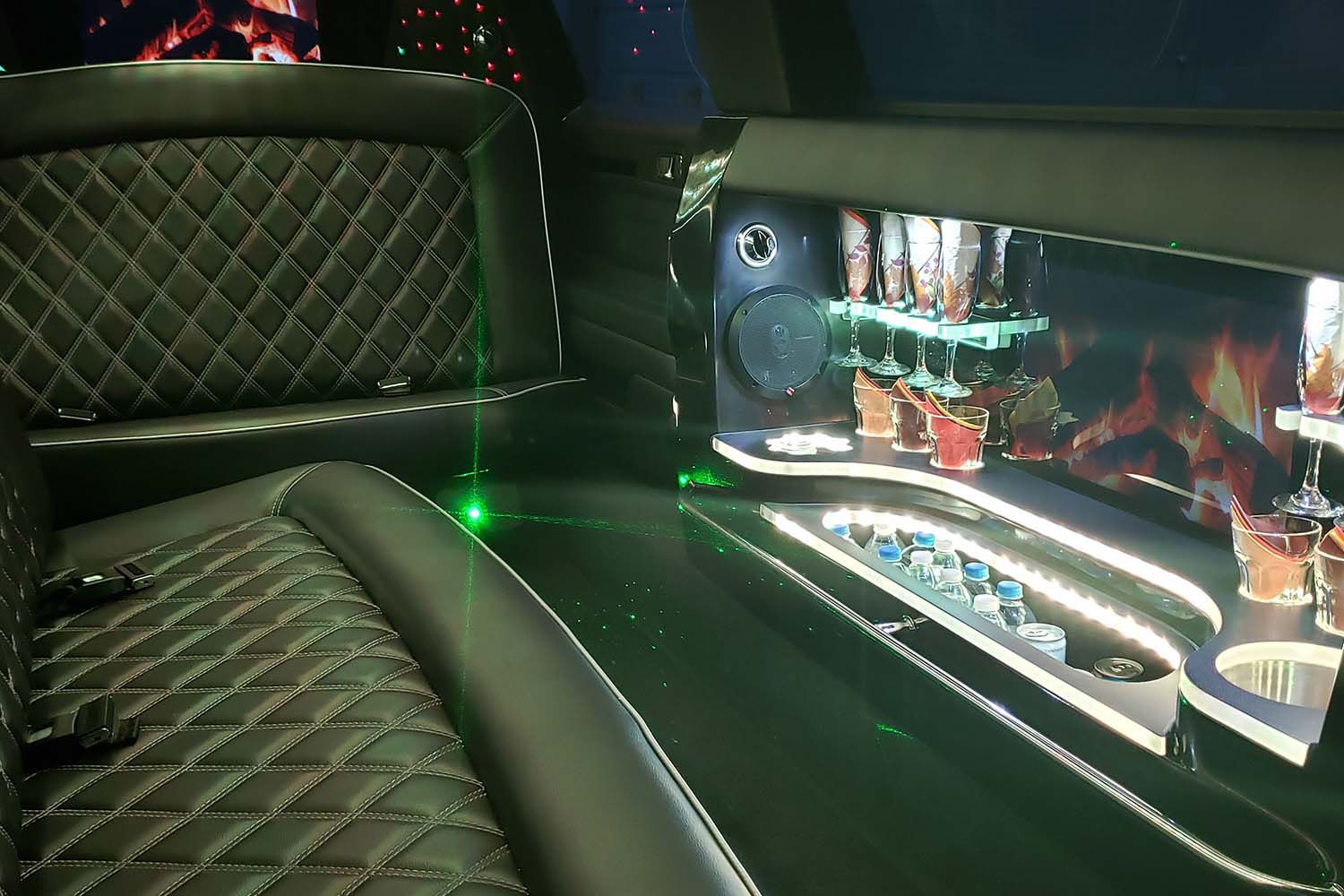 5TH door access is just one of the premium upgrades our limousine offers. Full media and lighting controls. Built-in bar and coolers. Leather seating and luxury styling make this limousine a head-turner.